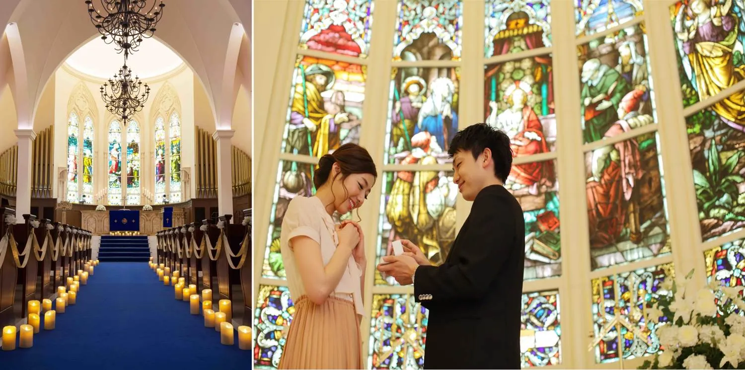 キャンドルの柔らかな光に包まれたチャペルをふたりで贅沢に貸し切ってプロポーズ。