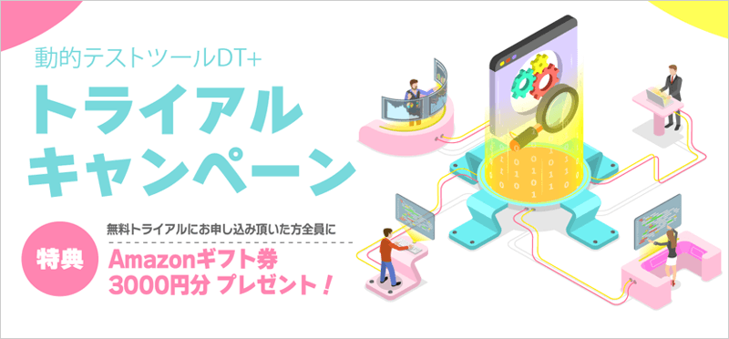 Amazonギフト券(3000円分)がもらえる「動的テストツールDT+トライアルキャンペーン」も実施中!