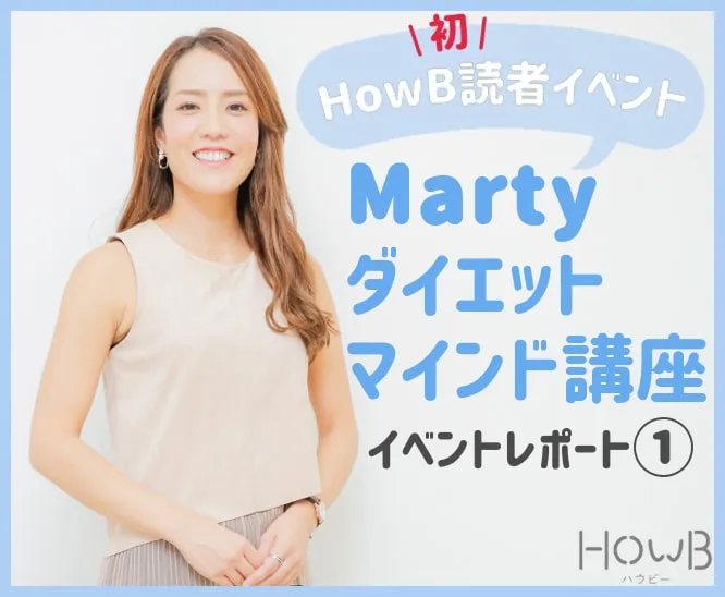 HowB初の開催となる読者イベントをレポート!連載でもおなじみのオンラインダイエットアドバイザー、Martyさんをスペシャルゲストに迎えて開催。ダイエットマインド講座から、自宅で簡単にできるトレーニング、HowBガールたちのおすすめコスメ紹介などなど、盛りだくさんの内容でお届けしました。