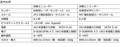 ※ピリオディックエラー<0.5秒 rms(typical):AXJ赤道儀に取付けた状態で恒星時追尾を行った時の追尾エラー(弊社規定の測定方法による)