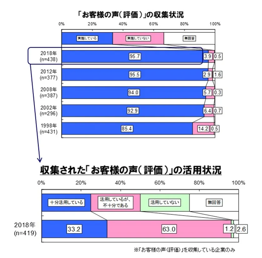 両者の繋がりが弱い企業では、収集した「お客様の声(評価)」を活かせず、今も目立つ不満の解消にとどまっている。