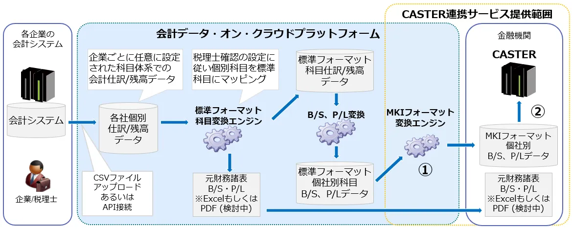 ■「会計データ・オン・クラウドプラットフォーム」と「CASTER」の連携イメージ