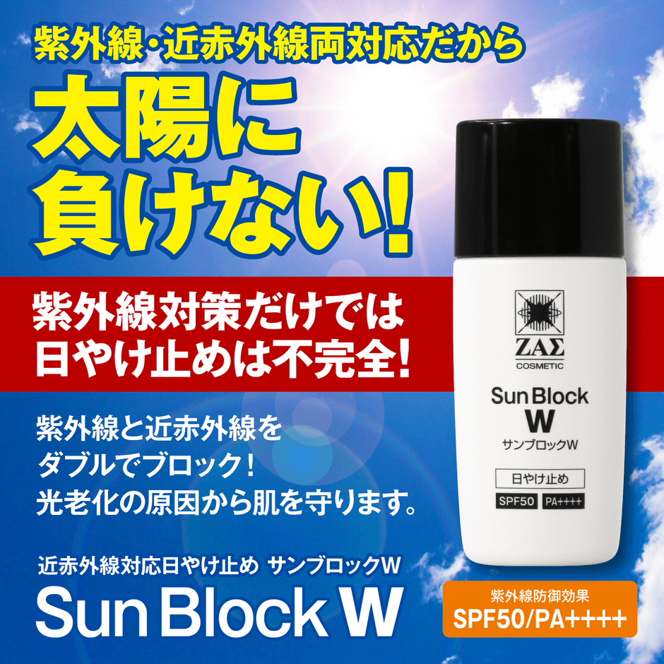 紫外線・近赤外線が多くなるこの季節、是非この機会にサンブロックWをお試しください!