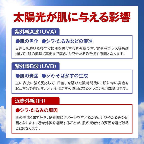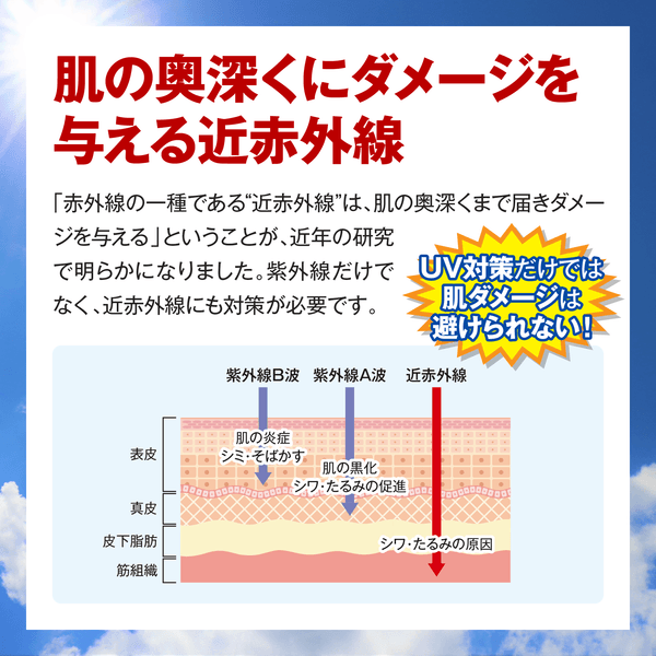 しかも、シワ・たるみ(肌老化)の原因となる近赤外線の量は紫外線の3倍!