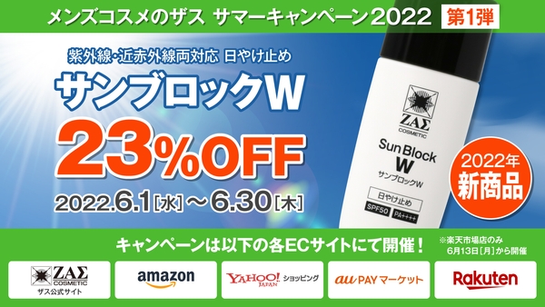 第一弾は、新発売の日焼け止めクリーム:サンブロックWを ※23%OFF で販売。