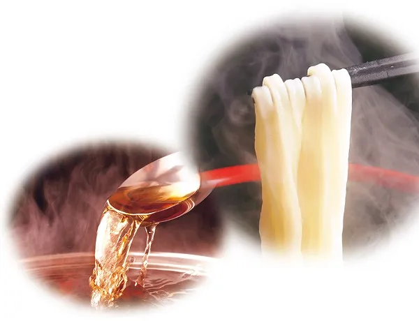 独自ブレンドのこだわり出汁を厳選された「削り節」を使用することにより、新たな旨味が広がる美味しい出汁に一新。鰹に比べコクのある味わいが特徴の出汁がとれ、麺つゆにはかかせない「宗田鰹(目近)節」や、味が濃く香りの高い透明で澄んだ出汁がとれる「北海道産昆布」、旨味の相乗効果でさらに味の深みが増す「ブレンド削り節」など選りすぐりの数種類を配合し、これまでにない「あしかりオリジナル出汁」に仕上げました。“味”と“素材”にこだわった出汁と3種の麺の相性を、ぜひこの機会にご賞味ください。