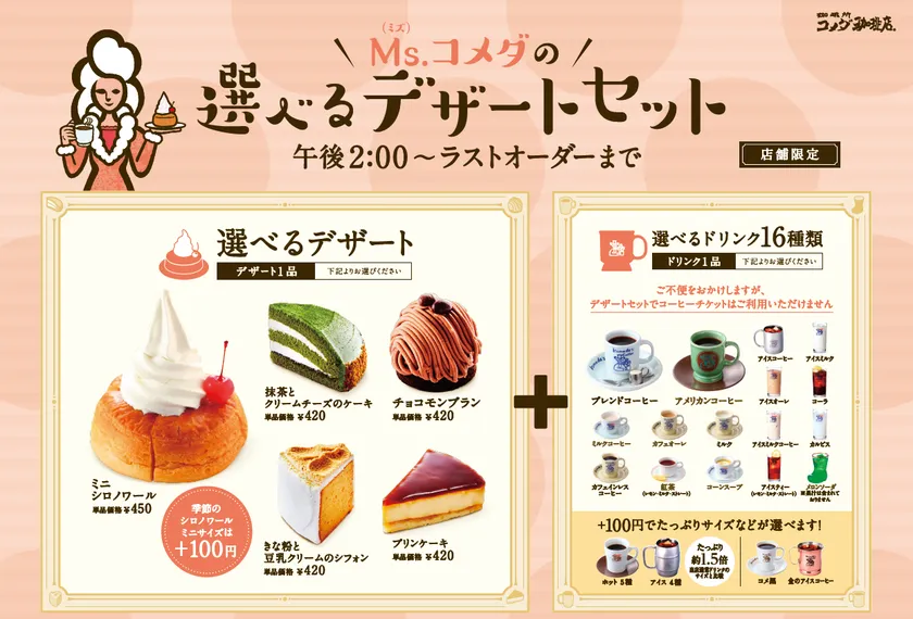 コメダ初、ドリンクとデザート両方楽しめる お得なセットが期間限定で登場! 「Ms.コメダの選べるデザートセット」12/10~開始