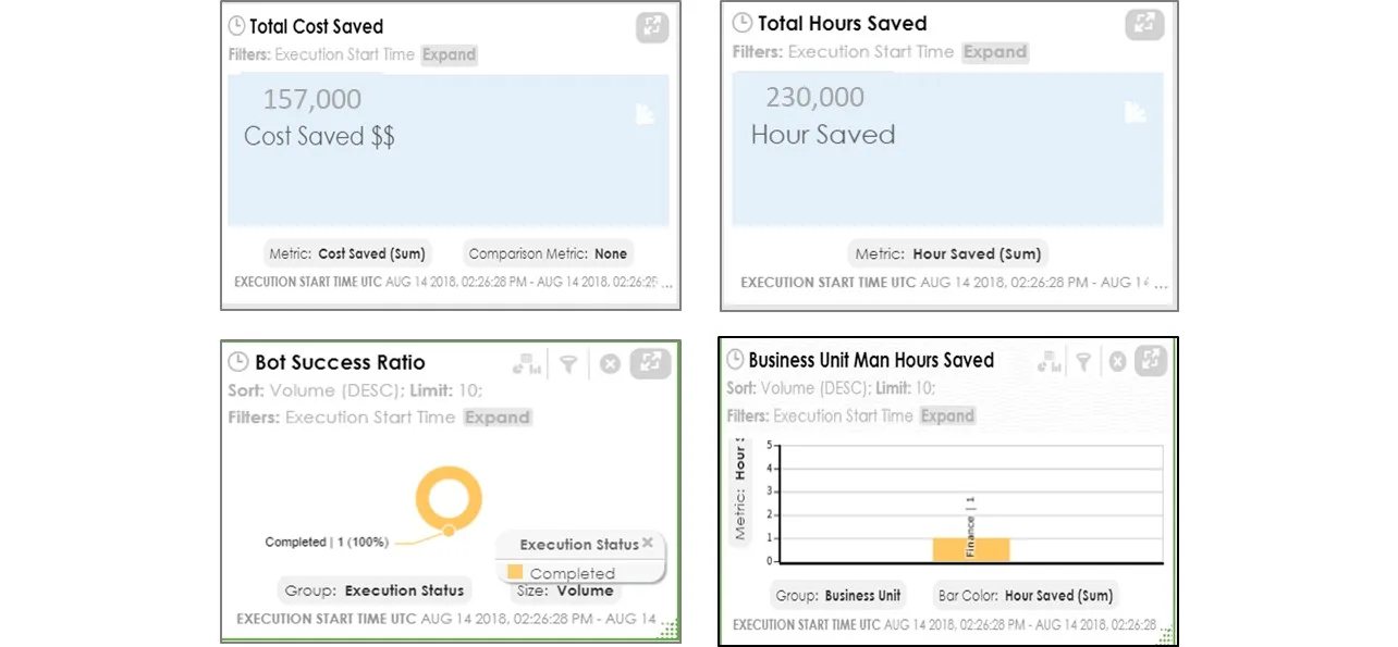 オートメーション・エニウェアの製品・エンジニアリング担当シニア・バイスプレジデントのAbhijit Kakhandik(アビジット・カカンディキ)は、次のように述べています。「RPAを使い始めることは簡単です。しかし、完全にスケールアップするにはROIを測定できる分析プラットフォームの搭載が必要です。ROIはあらゆるテクノロジーの有効性を測る唯一かつ最も優れた指標ですが、大抵その算出は困難です。