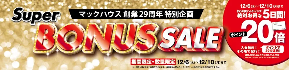 マックハウス創業29周年特別企画 「Super BONUS SALE」開催!