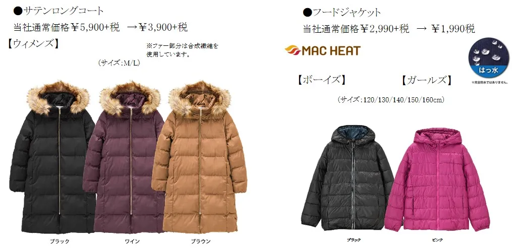 皆様にボーナスを賢く使っていただくため、あったかアウターやボトムス、グッズなど、生活に役立つ防寒アイテムをお値打ち価格にて販売いたします。