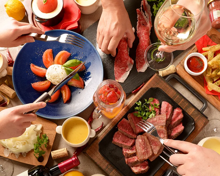 肉好き、ステーキ好きにはたまらない肉汁ジューシーな炭火焼。ステーキラインナップは、近年の赤身ブームで大人気の国産ランプステーキ、ヘルシーな味わい大判の牛タンステーキ、皮目はパリッとお肉はやわらかジューシーな国産鶏もも肉のステーキなど食欲そそるラインナップでお待ちしております。