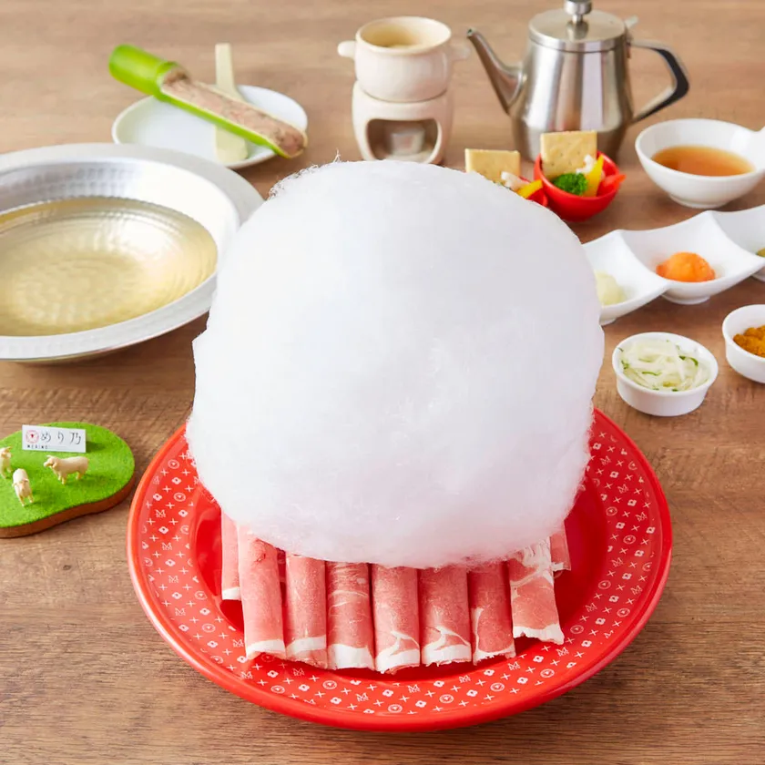 また、『めり乃』は“フォトジェニックな仕掛け”を所々に盛り込んだ店づくりをしております。ラム肉の上に乗せられた羊を模した“わたあめ”や、卓上の”ちいさな牧場”、コースターや内装まで細部にもこだわりました。これによりSNS(social network service)による認知度アップを見込んでおります。