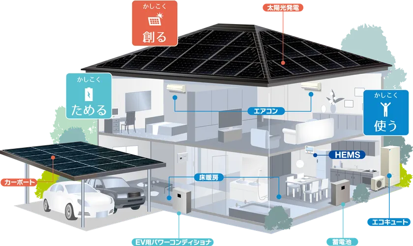エスイーエム・ダイキン株式会社は政府の進める「ネット・ゼロ・エネルギー・ハウス(ZEH)」の普及を加速させるため、シャープ株式会社とダイキン工業株式会社の製品をパッケージ、システム化した独自の自社ブランドZEHシステム「SEMD・ZEH」(セムド・ゼッチ)を2019年4月1日より発売します。