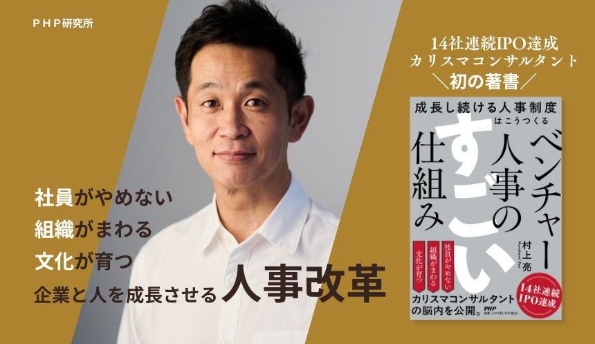 株式会社PHP 研究所(京都市南区・代表取締役社長 瀬津要)は、『ベンチャー人事のすごい仕組み』(村上 亮 著/税込2,090 円)を2025年8月29日に発売します。村上亮氏は、大手外資系コーヒーチェーンや国内トップクラスのIT企業などの人事制度構築に携わり、その急成長を支えてきました。さらに、これまでIPO準備をサポートした14社すべてが上場を達成しているカリスマ人事コンサルタントです。本書は、300社以上のコンサルティング経験をもとに、企業と人を成長させる村上流の人事改革について、実例を示しながら解説する初めての著書です。