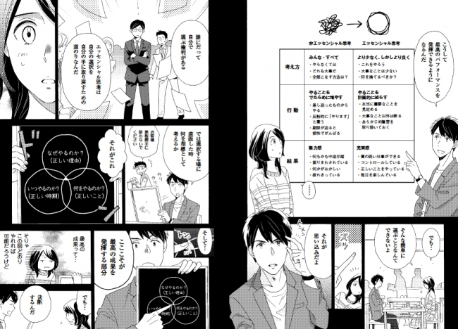 今回発売される『マンガでよくわかる エッセンシャル思考』は、親本の内容をわかりやすくマンガでまとめ、より理解しやすい構成になっています。
