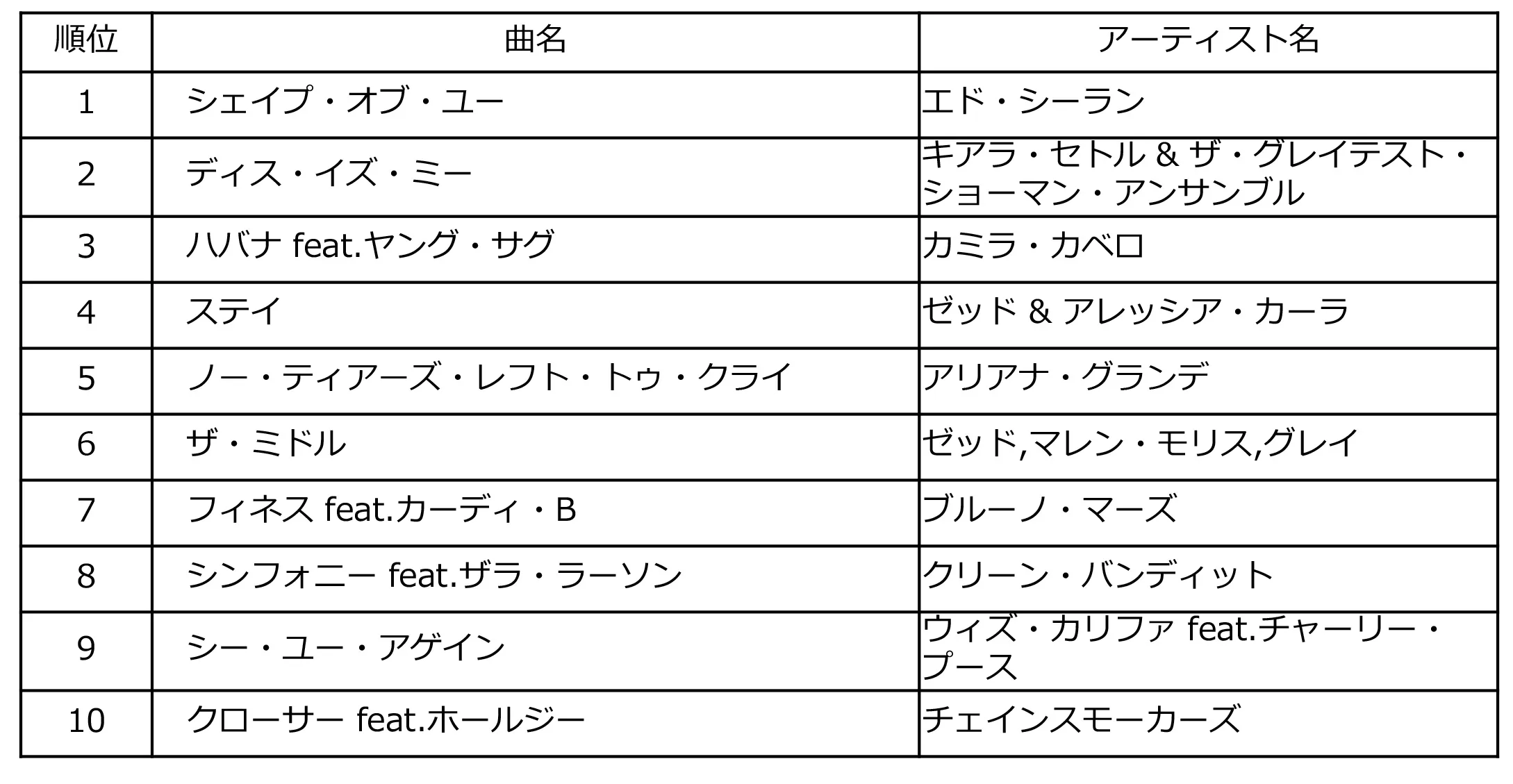 7つのデータを合算するBillboard JAPAN Hot 100から洋楽曲を抽出した国内洋楽チャートの年間1位