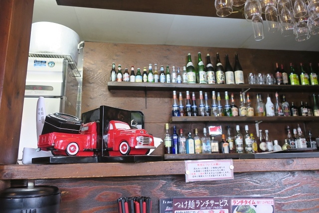 外観は黒を基調としたラーメン店っぽいルックスですが、内装はアメリカンテイストのインテリアが目を引く、お洒落な雰囲気になっています。