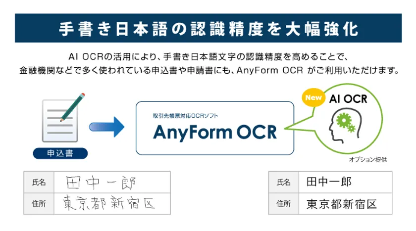 この度、誰でも簡単に帳票のデータ化が行えるOCRソフト「AnyForm OCR」のVer5.2にて、手書き日本語文字を高精度に認識するAI OCRエンジンをご提供することになりました。