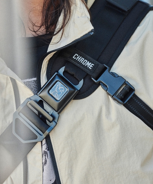 前面のポケットはCHROMEファン待望の、16インチまで対応のジッパー付きPCスリーブと、必需品収納のマグネット式フラップポケットに変更。ファン待望のキャリーハンドルは、デザインを損なわないようにアップデートいたしました。