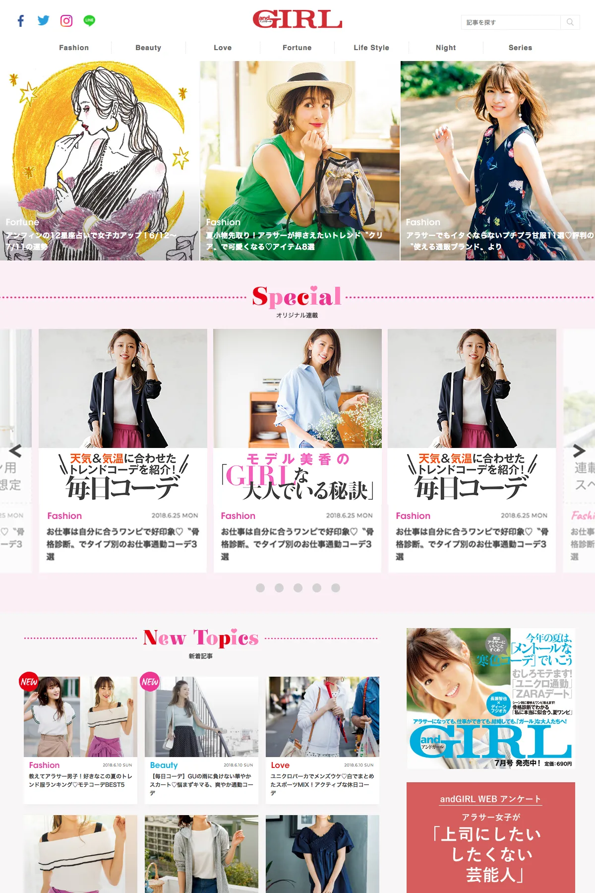 アラサー女性に人気のあるタレント・モデルを中心に、web限定のオリジナルインタビューも掲載中です。