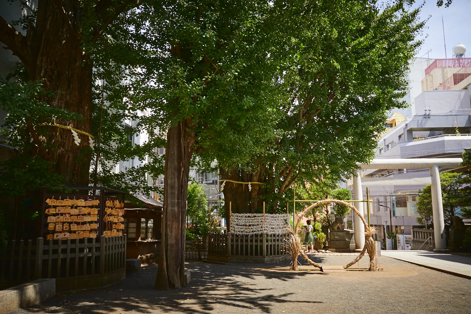 そばこんの朝、お客様の良縁を心から願うOMOレンジャーが街の縁結びスポットの「夫婦銀杏」がある天祖神社へお連れします。樹齢600年の雄木と雌木の銀杏が長い間並んでいることから、縁結びのご利益があると言われています。普段は大塚のはしご酒担当のOMOレッドが、この日だけは「出会えるOMOレンジャー」として出動し、お客様同士にはしごを掛けて良い縁が結べるようにそばこんを盛り上げます!