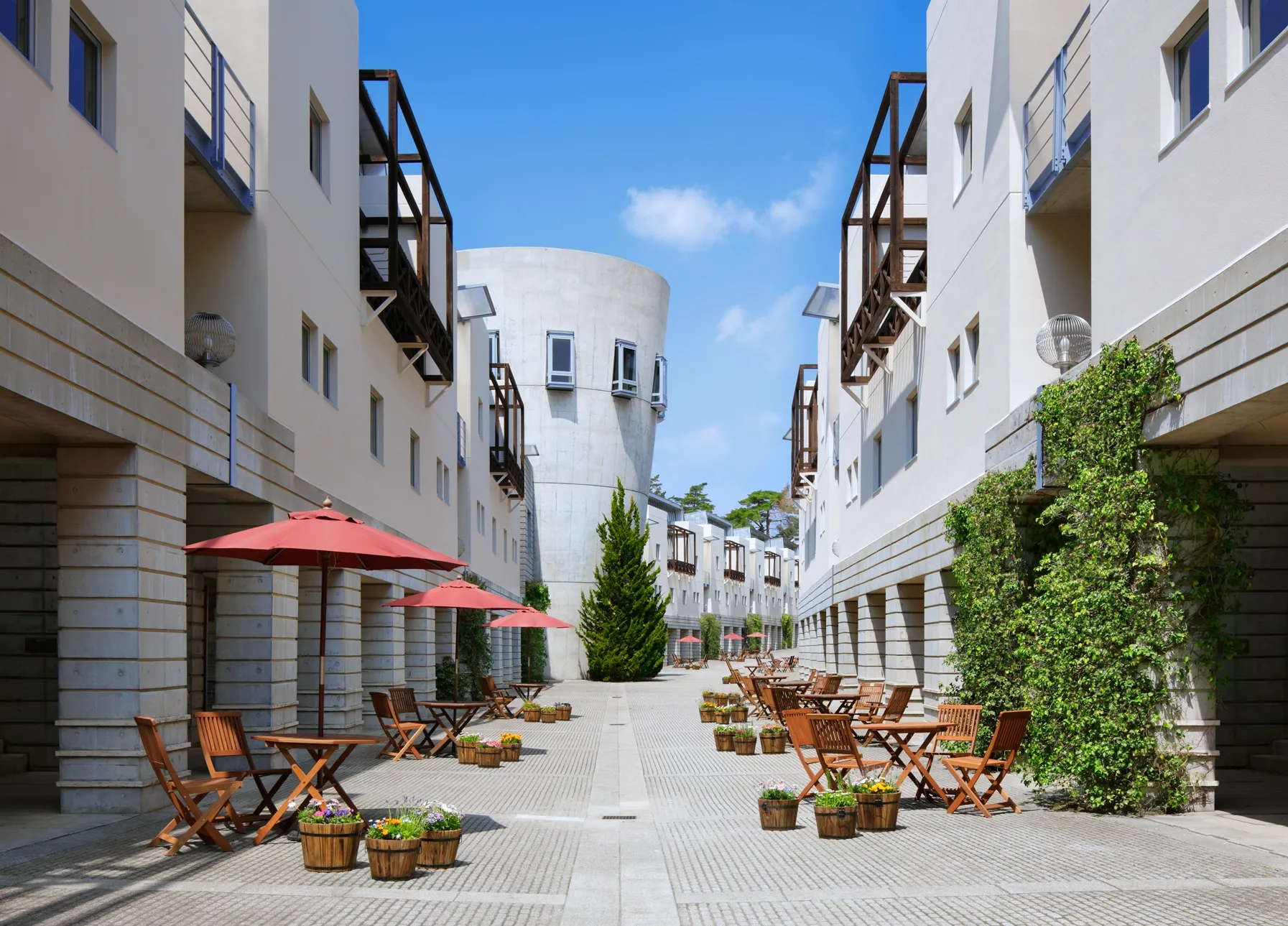 建築界の巨匠マリオ・ベリーニが手掛けたデザインホテルです。ホテルのメインストリートには、19店舗のセレクトショップが立ち並び、波の出る屋内プールや、本格的イタリア料理のメインダイニングなどを備えています。
