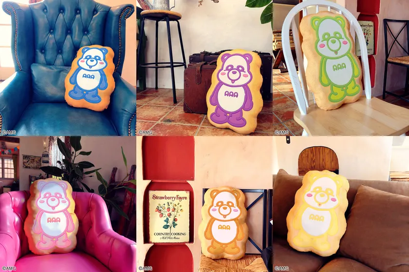ラインナップは、各メンバーカラーのアイシングクッキーをデザインしたクッションやスマホリング、チョコレートをモチーフにしたハンドタオルやラバーストラップ。また、え~パンダ顔型パンケーキを実際に作って楽しめる約30cmのパンケーキパンも初登場します。ラストワン賞は直径約100cmのふわふわブランケットです。