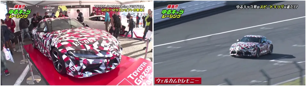 『爆走!ゆるキャラレーシング』では、ねば~る君、うどん脳、ちっちゃいおっさん、出世大名 家康くんなど人気ご当地ゆるキャラ8体が、イス取りゲーム、風船カートレース、障害物レース、超強風ビーチフラッグ、ゆるキャラカート対決の計5種目に臨みました。普段見られないゆるキャラの姿や生放送ならではのハプニングが続出。中には、どう考えても見えてはいけないものまで・・・。また、一生懸命に取り組むゆるキャラたちへのエールとして、トヨタ自動車の豊田章男社長からの応援VTRが寄せられるなど充実の内容になりました。また、番組中にTGRF2018の様子を中継。ハイライトをお伝えしました。1978年~2002年まで販売されていたスポーツカー・スープラの新型が番組内でお目見え。ゆるキャラによるゆるくない戦いだけでなく、車ファンにはたまらない内容が盛りだくさんの放送となりました。