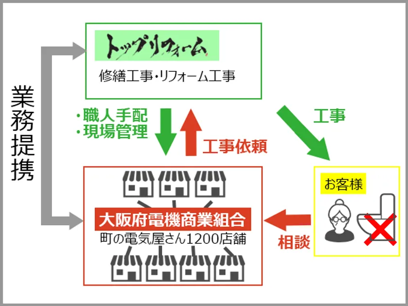 トップリフォーム、大阪府電機商業組合と業務提携 スピーディーな家電修理に加え、修繕・リフォーム工事も依頼可能に