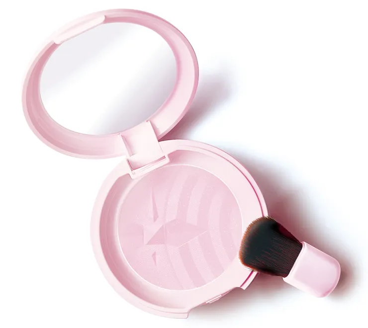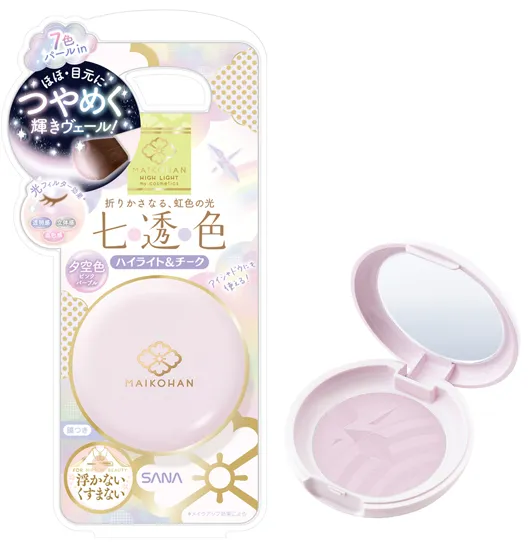 このたび発売する「舞妓はん 虹の光パウダー 02 恋空色」は、ハイライト、チーク、アイシャドウなどマルチに使えるピンク色の「プレストパウダー」です。