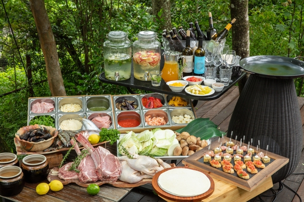 熱い議論を交わした後は、ホームパーティがコンセプトの”囲むヒトサラ”でお仲間との懇親を深めていただけます。近海で採れた魚介類や森の恵みなどの素材を生かし、自らも参加できるバーベキューやパーティースタイルの調理法でご用意します。
