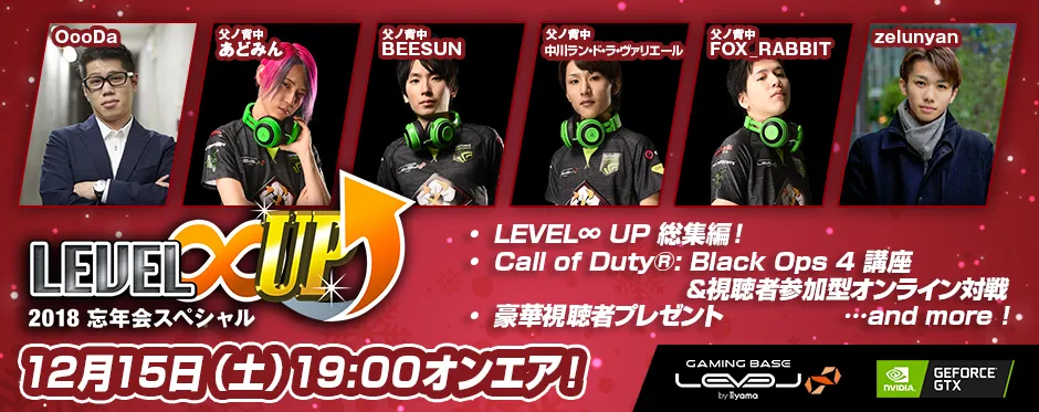 LEVEL∞ 主催 eスポーツ・ゲーミング大会シリーズ 「LEVEL∞ UP」2018忘年会スペシャル放送決定!
