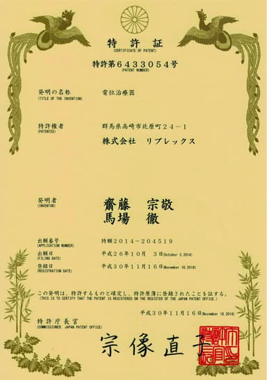 インプレッション株式会社(本社:兵庫県尼崎市、代表取締役:小島 雄一、以下 当社)は、当社の開発したIAS30000に搭載している、『インバータ制御システムによる電位治療器の波形生成・波形出力システムと効果的な波形プログラム及びは波形変動』において特許を取得したことをご報告いたします。