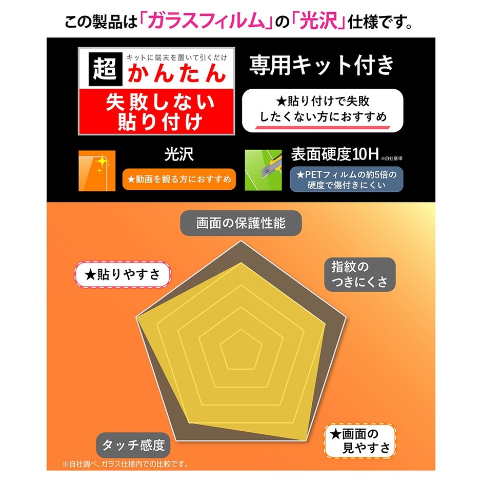 Switchシリーズ用保護ガラスフィルムは、誰でも簡単に2ステップで貼り付けられるようなキット付きでずれずに正しい位置でガラスフィルムを貼り付けることが可能な設計。