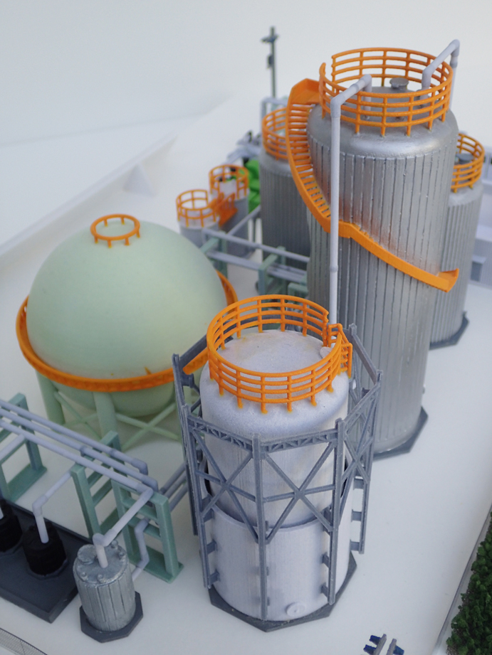 3DCAD、3Dプリンターを活用することで、プラントの装置群、配管ルート、建屋等の製造・処理フローを立体的に視覚化することが可能となりました。設計図面から3Dデータを作成し、3Dプリンターに出力することで、速やかな設計支援とデザインプロセスを一貫体制で行います。