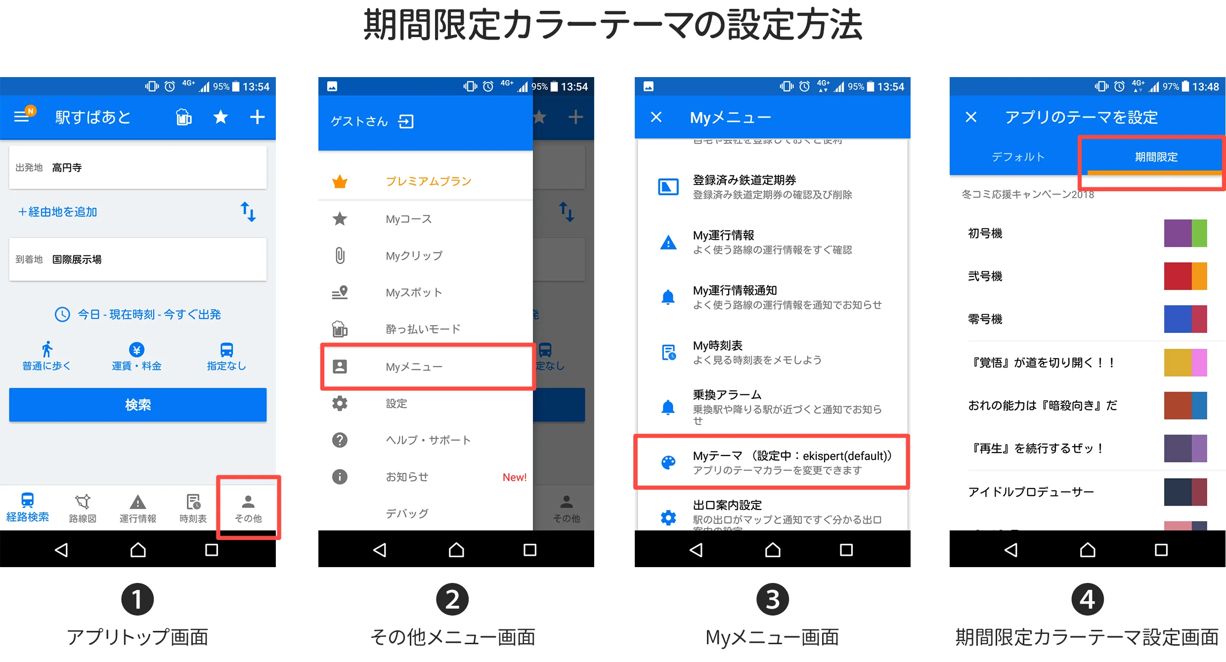 魔法によって、「検索結果の前後のダイヤ選択」「My運行情報通知」や「酔っ払いモード」などのプレミアム機能(有料)を無料開放したり、アプリの配色を変えたりして、冬コミなどでお出かけする人々をサポートします。