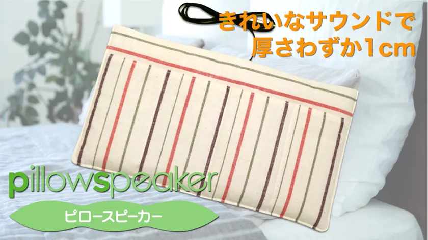 柔らかな手触りの遠州綿紬のカバーで包まれた、超薄型高音質のステレオスピーカーです。上質のサウンドが何の違和感もなく枕の下から聴こえるピロースピーカーです。
