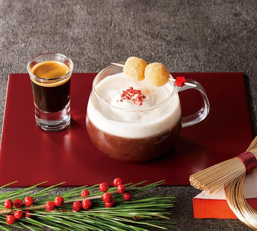 そして、別添えのエスプレッソをお客様のタイミングで加えていただくことで、すっきりとした甘さのセガフレードでしか味わうことのできない“ぜんざい”に変化!一度に何度も美味しい、年末年始一押しのドリンクです。
