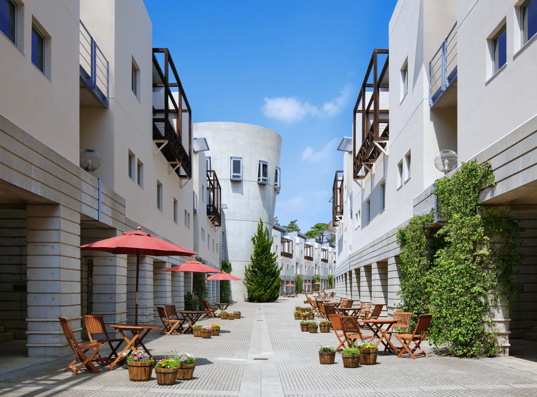 建築界の巨匠マリオ・ベリーニが手掛けたデザインホテルです。ホテルのメインストリートには、19店舗のセレクトショップが立ち並び、波の出る屋内プールや、本格的イタリア料理のメインダイニングなどを備えています。