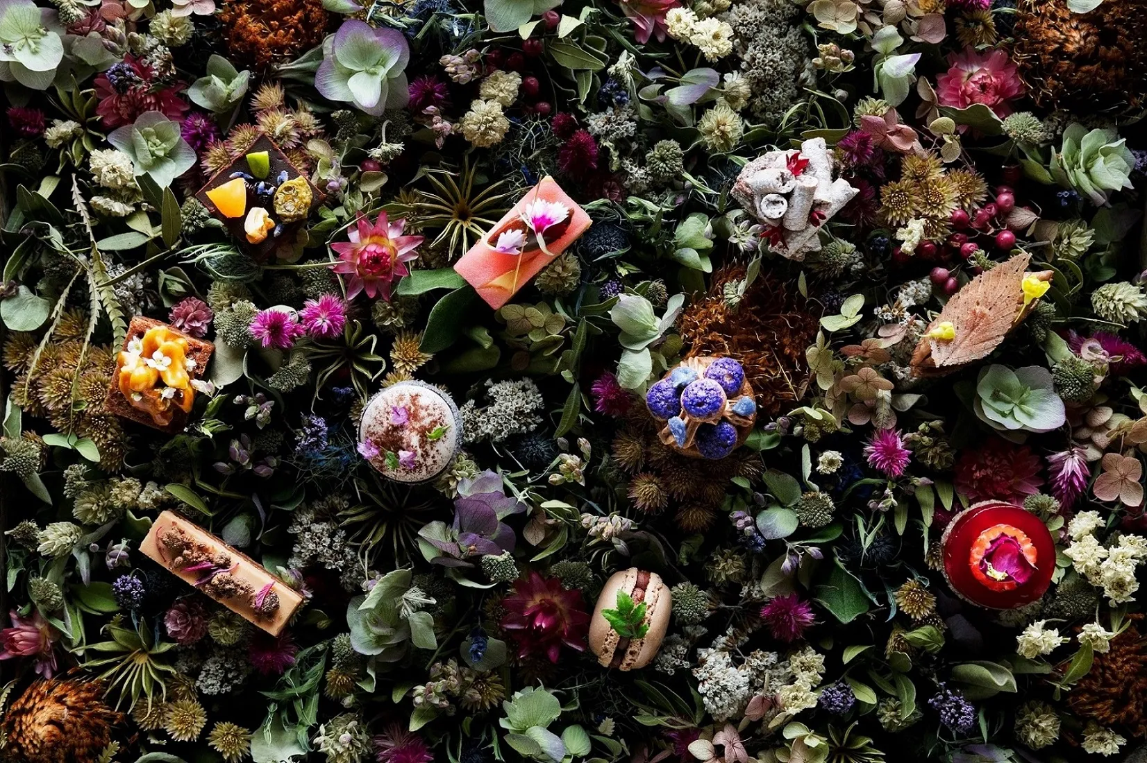 「セゾン・ド・ショコラ 2019」では、花をモチーフにしたデザートコース「フルール・ド・ショコラ」を提供します。日本ではバレンタインにチョコレートを贈る習慣がありますが、欧米では、大切な人に花束を贈ります。この風習にインスピレーションを得て、2019年は、花束をショコラデザートで表現しています。全3品のデザートすべてにショコラを使い、ひとつひとつを、花のように美しく細やかに仕立てました。ひとつ味わうごとに、花を一輪贈られたような幸せな気持ちになるデザートコースです。
