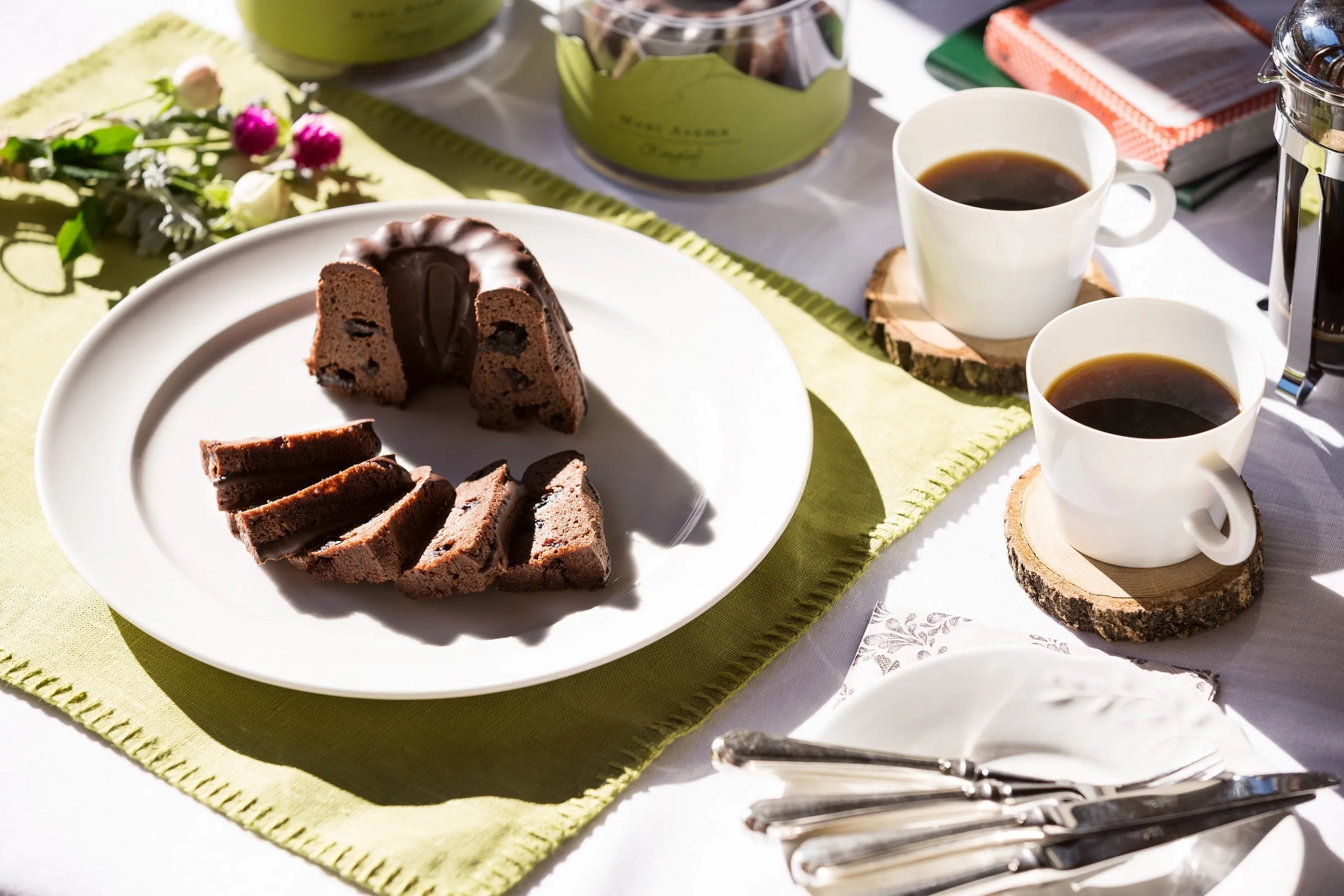 軽井沢の象徴「浅間山」に見立てたクグロフにショコラを使い、ジューシーなセミドライの巨峰をたっぷりと加えました。