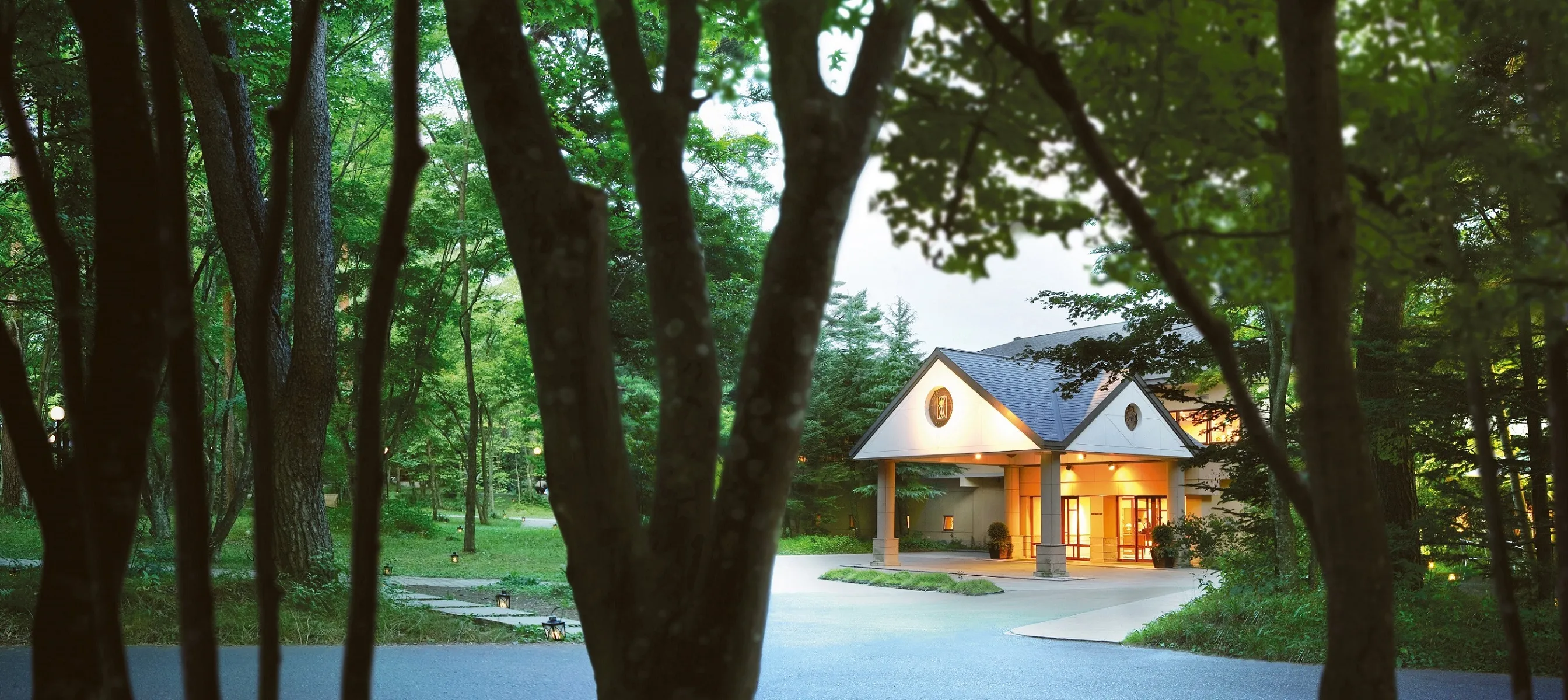 軽井沢の小高い丘の上の木立に囲まれた美食のホテルです。ザ・ラウンジでは旬のフルーツを用いたデザートを一年を通して提供しています。客室はすべて独立型のコテージスタイル。森の空気を肌で感じることができる、心身ともにやすらげる空間で皆様をお迎えします。