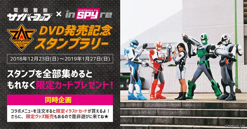 リアルゲームの楽しさを伝え、新たな「遊びの世界」を創造する株式会社ヒューマックスエンタテイメント(所在地:東京都新宿区、代表取締役社長:林 祥裕)と株式会社MENU(所在地:東京都千代田区、代表取締役社長:鈴木 大志)は、新宿・歌舞伎町の本格スパイ体験アトラクション「inSPYre(インスパイヤ)」にて、「電脳警察サイバーコップ」DVD発売記念スタンプラリーを2018年12月23日(日)から2019年1月27日(日)まで開催します。
