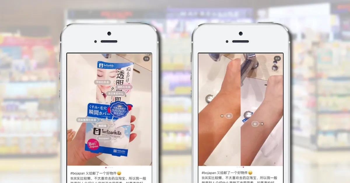 まず1つ目の施策として、国内でモニターユーザーがブログやInstagramなどに投稿(※)した「Instawhite トーンアップクリーム」のクチコミを簡体字に翻訳し、「チャイナタッチ」と連動する中国人向け情報サイト「BoJapan(播日本)(https://bojapan.net/)」に記事コンテンツとして掲載。「国慶節」の時期にあわせて、この記事に誘導するQRコードを印刷した限定パッケージを店頭で展開しました。