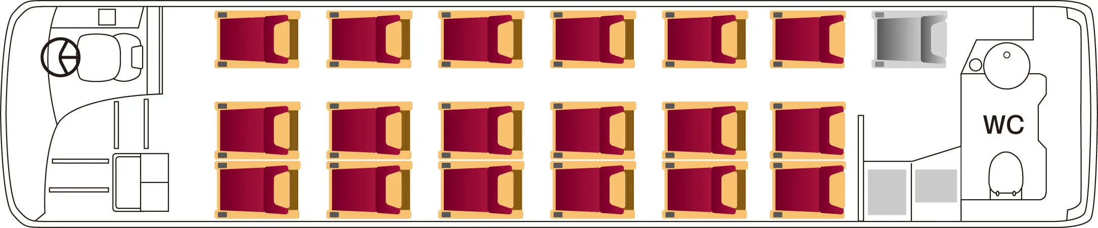 ・座席は、横3席×6列の18席で、ゆとりをもたせた配置