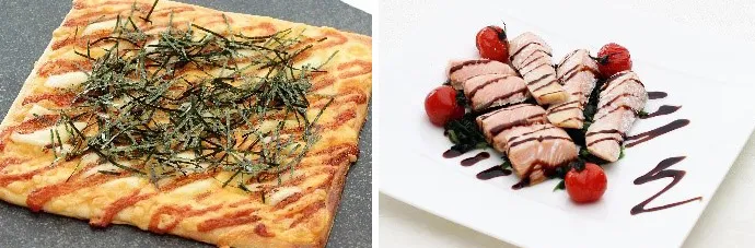 右:サーモンのロティ ソースバルサミコ(2月)