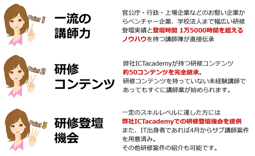 ・弊社が持つ研修コンテンツ約50の完全継承