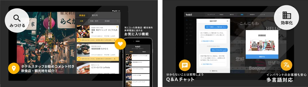 機能 :宿泊者向けコンテンツ、施設の業務効率化サポート機能の提供
