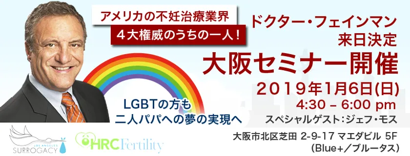 HRC不妊治療クリニックは、すべての「赤ちゃんに会いたい」と望まれている方からのご要望を受け、アメリカの不妊治療業界4大権威の1人であるドクター・フェインマンが、2019年1月5日(土)の東京に引き続き、2019年1月6日(日)に大阪・北区で追加のセミナーを開催いたしますことをお知らせいたします。
