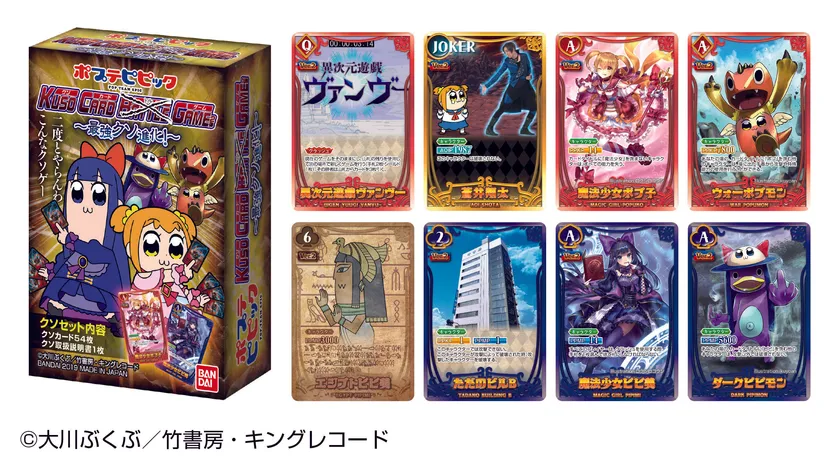 株式会社バンダイ カード事業部では、『ポプテピピック』から『ポプテピピック クソカードゲーム2弾~最強クソ進化!~』(1,944円 税込)を2019年4月1日(月)より“あみあみオンラインショップ”“あみあみ秋葉原ラジオ会館店”“あみあみ秋葉原店2nd”の3店舗にて販売開始いたします。また、『ポプテピピック クソハイパーDXカードグッズセット』(3,500円 税込/送料・手数料別途)を2018年12月21日(金)よりバンダイ公式ショッピングサイト「プレミアムバンダイ」( http://p-bandai.jp/?rt=pr )にて受注開始いたします。(発売元:株式会社バンダイ)